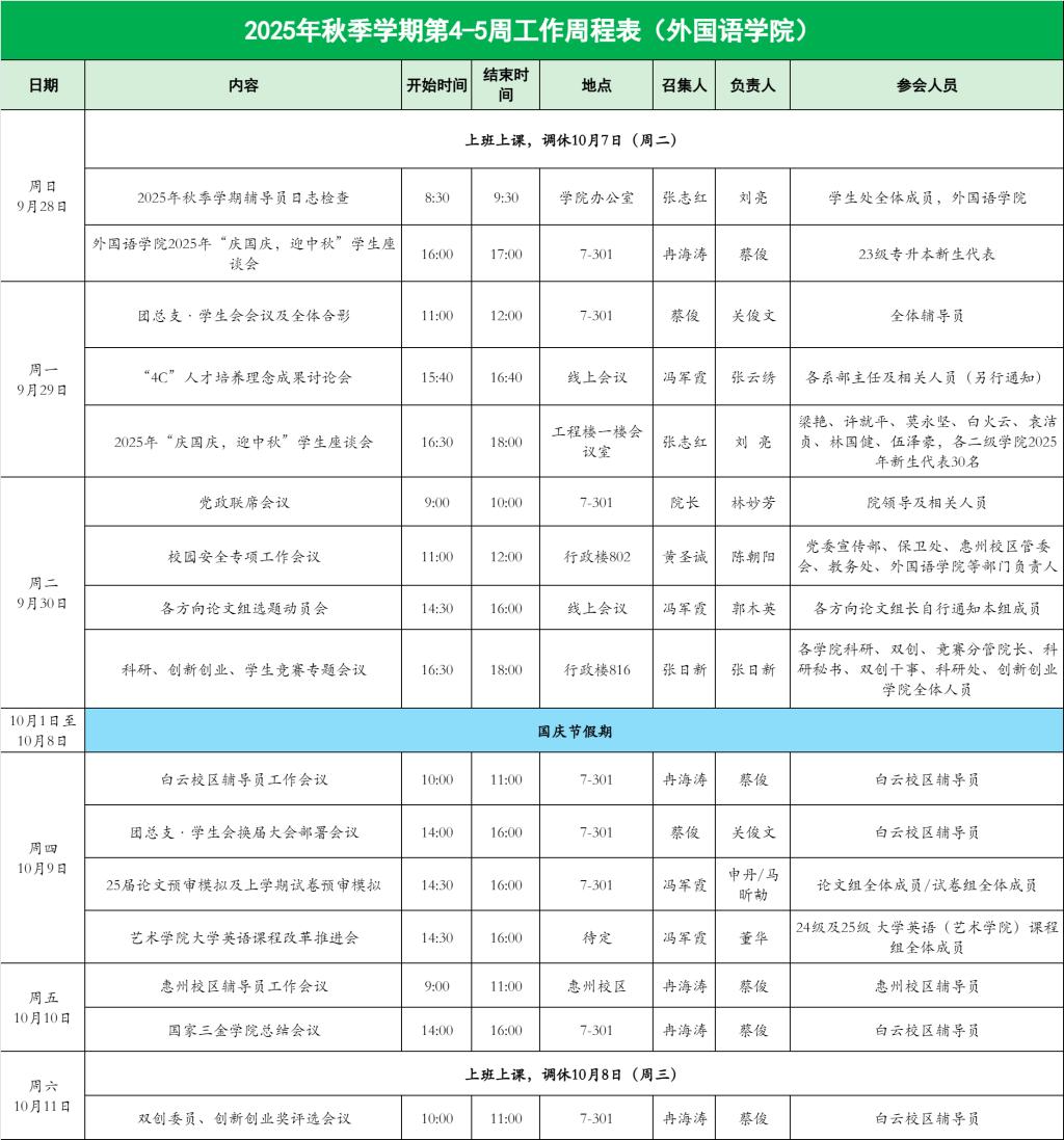122cc太阳集成游戏2025年秋季学期第4-5周工作周程表
