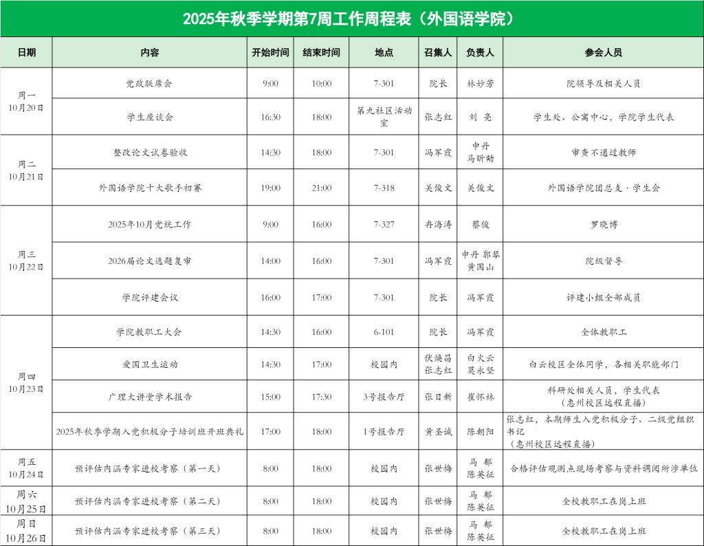 122cc太阳集成游戏2025年秋季学期第7周工作周程表