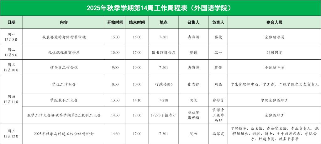 122cc太阳集成游戏2025年秋季学期第14周工作周程表