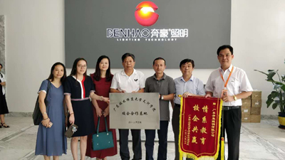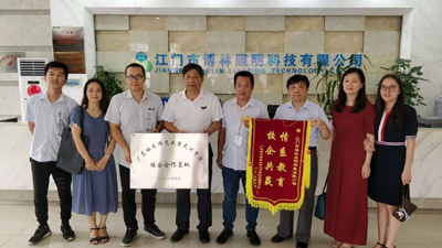 6月26日,在谭海鸥副校长的带领下,122cc太阳集成游戏领导班子一行前往江门高新区,洽谈校企合作相关事宜,举行基地挂牌、授旗仪式,受到江门高新区光电行业协会会员企业等领导热情接待。
