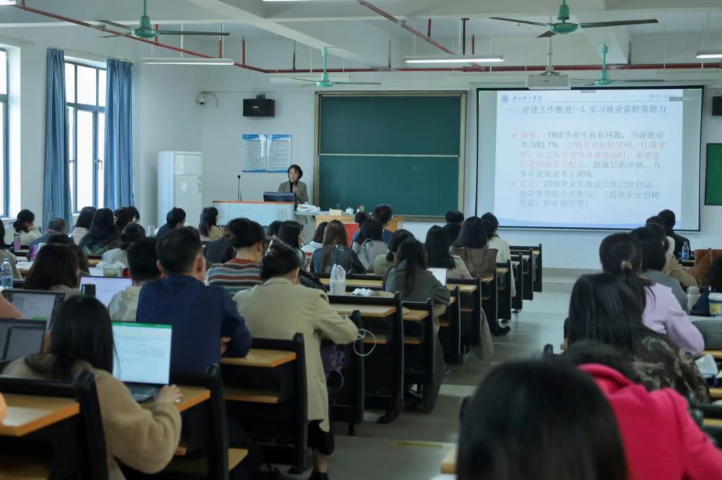 会议上,冯军霞副院长总结了前期评建工作中的推进情况。她首先肯定了我院教师在各项教学工作中的付出和努力。她鼓励以指导老师和青年教师结对的方式,提高毕业生论文指导工作的规范性,提升青年教师的教学水平。此外,会议还提出了打造好“四个课堂”的改进建议,推动校企合作,助力更多毕业生就业,并进一步布置了期末试卷的审查工作安排。