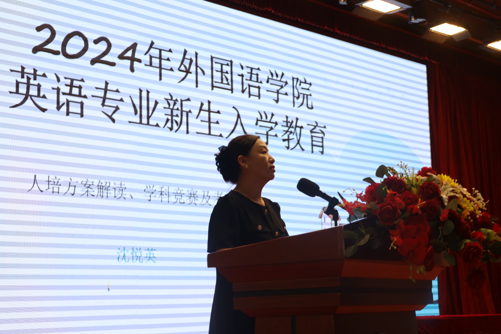 为帮助我院22级专升本新生深入洞悉人才培养方案,明确学科竞赛与考证方向,树立清晰的学习目标,激发学习热情,9 月 4 日下午,我院在13栋报告大厅开展以“人培方案解读、学科竞赛及考证介绍”为主题的讲座。讲座由我院英语系副主任沈悦英主讲。22级全体专升本新生参会。