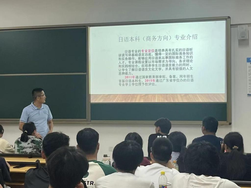 日语系主任黄国山首先进行了日语本科(商务方向)的专业介绍。该专业培养目标是培养能在教育、企业、外事、外贸、文化、旅游等领域从事日语教育、涉外等相关工作的高素质应用复合型人才。与此同时,他还着重介绍了该专业的专业课程、相关资格证书和就业情况。最后,黄国山主任祝愿日语专业的同学们在未来的学习和生活中取得优异的成绩和丰富的收获!
