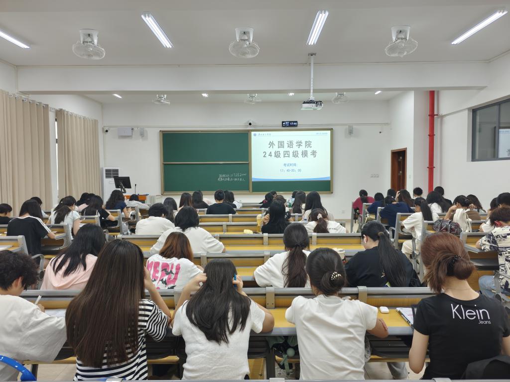 学院组织此次模考,旨在通过全真模拟帮助同学们熟悉流程、适应节奏、提升应试能力。自带题目的方式鼓励学生主动规划备考,培养自主学习力。相信经过此次模考,外院24级学子将以更明确的方向、更饱满的热情投入后续复习,在四级考试中从容应考,取得优异成绩,为学院增光添彩!此次模考以 “全真模拟 + 自主管理” 为核心,不仅帮助学生熟悉考试流程、适应答题节奏、提升应试能力,更通过“自主选题”模式引导学生主动规划备考策略,深度培养自主学习与自我管理能力。相信外院 24 级学子将以此次模考为起点,以更清晰的方向、更昂扬的斗志投入复习,在四级考试中从容应考,勇创佳绩,用奋斗彰显青春风采!