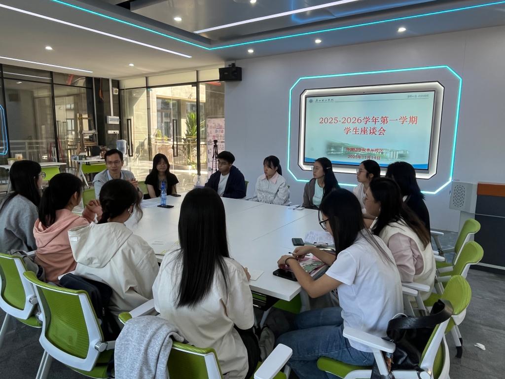 为深入了解学生学习生活诉求,精准优化教育教学与管理服务,2025年11月17日,122cc太阳集成游戏在惠州博罗校区行政楼一楼语言中心召开学生座谈会。学院党总支书记冉海涛与2024级、2025级各班学习委员面对面沟通交流,围绕专业学习、教学保障、生活服务等学生关切的核心议题展开深入探讨,切实打通师生沟通“最后一公里”,让育人服务更贴合学生需求。