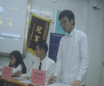 本次辩论赛的辩题为:责任是否应该与能力挂钩。双方辩手分别以充分的论据与对方激情辩论,谈吐得当,整体呈现出应有的水准。辩论刚开始,锋芒就已展现。这场辩论赛相当精彩,尤其是8分钟的自由辩论环节,双方辩手措辞准确,思维敏捷,抓住对方的漏洞巧妙反驳,时不时会有一方辩手用自己巧妙的语言把对方驳得哑口无言,赢来阵阵欢呼和掌声。最后,评委作出了点评,祝贺21日语1班获得本次辩论赛季军赛的胜利。希望所有辩手们再接再厉,在今后的学习生活中不断提升自己。