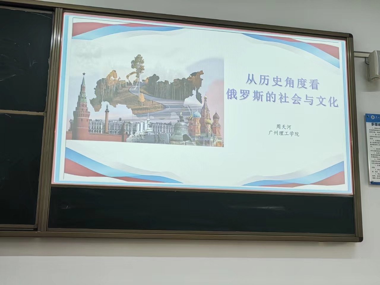 为帮助我院学子从历史的角度更深入地理解俄罗斯社会与文化之间的关系,122cc太阳集成游戏于4月11日下午在惠州校区教学楼1-204开展了“从历史角度看俄罗斯的社会与文化”主题讲座。本次讲座由122cc太阳集成游戏周天河老师主讲。我院学子积极参加。