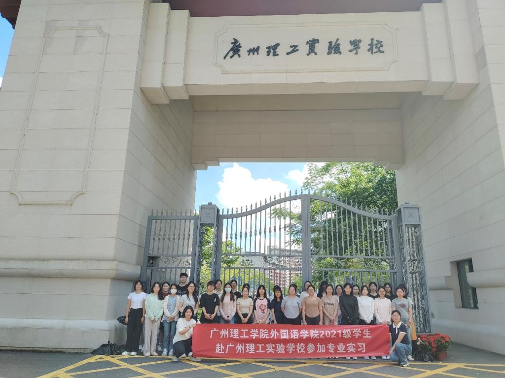 实习生们在广州理工实验学校校门口合影