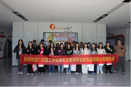 走进广州深蓝标识,标识产品从设计、打样到规模化生产的全链条工艺得以清晰呈现。在珏饰·晾百年,企业负责人不仅展示了各类防风卷帘、遮阳帘等产品,更带领同学们步入自动化车间,直观感受智能制造的效率提升。舒格糖的参观让同学们对食品类目在跨境销售中的合规要求与品牌建设路径有了切身理解。最后在菲力斯太阳能公司,从光伏组件到储能系统的完整产品展示,以及高效的智能化制造流程,让同学们深刻感受到清洁能源产业的科技力量。